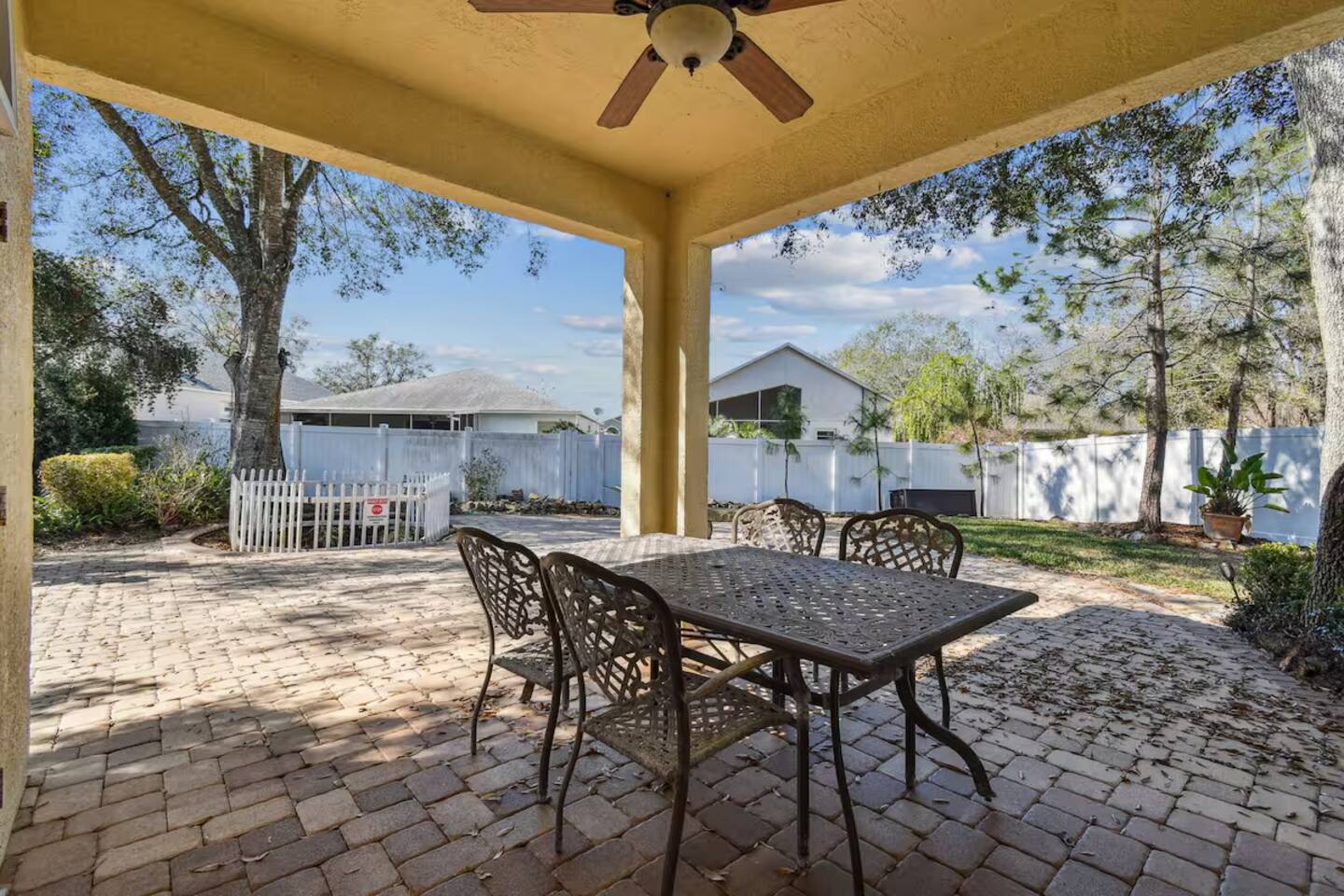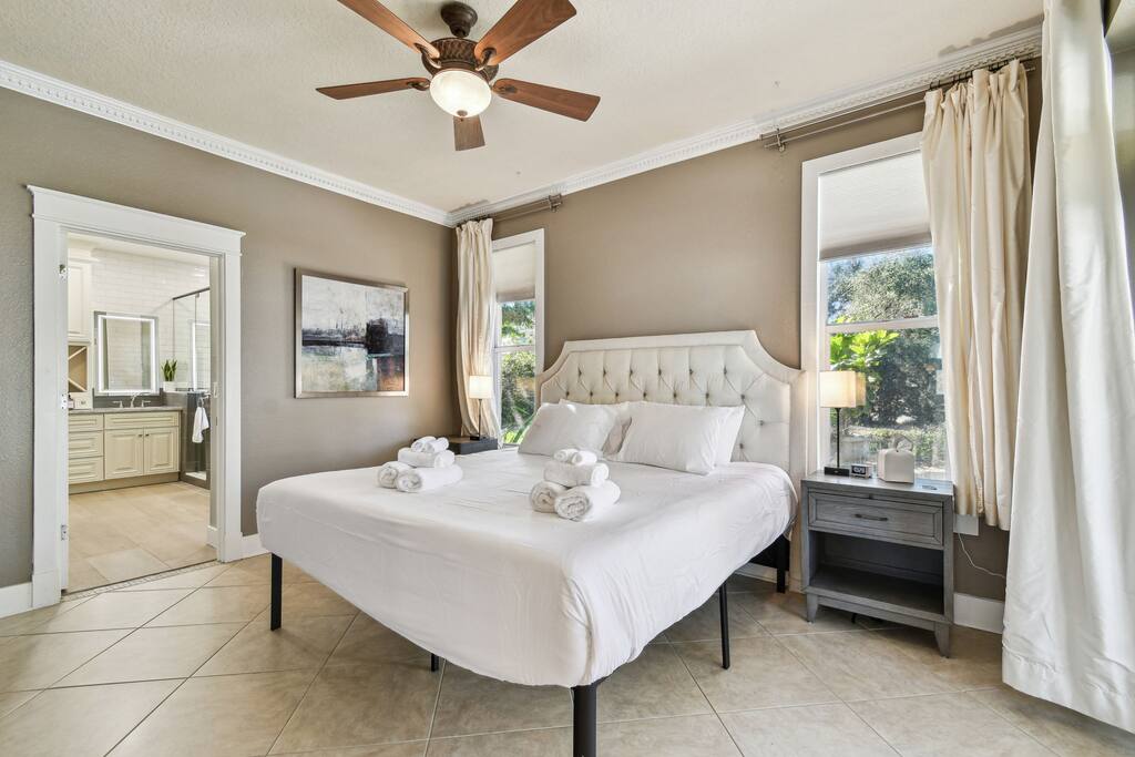 🌟 Prime Location Shopping & Dining – Just minutes from Tampa Premium Outlets and Wesley Chapel’s vibrant dining scene. Outdoor Adventures – A short drive to Busch Gardens Tampa Bay, Lowry Park Zoo, and The Florida Aquarium. Beach & Water Fun – 20 minutes to MetroLagoons, 30 minutes to Adventure Island, and just an hour from stunning Gulf Coast beaches. Sports & Events – Minutes from Saddlebrook Resort, AdventHealth Ice Arena, and Sarah Vande Berg Tennis Center. Plus, within 30 minutes of: 🏈 Raymond James Stadium (Tampa Bay Buccaneers) 🏒 Amalie Arena (Tampa Bay Lightning) ⚾ Steinbrenner Field (Spring training home of the New York Yankees) 🏡 The Space This thoughtfully designed retreat offers stylish décor, modern amenities, and everything you need for relaxing. Curl up with a book in the cozy window seat, enjoy a glass of wine on the patio, or settle in for movie night on the 84-inch TV. 💻 Working remotely? The living room TV can also function as a touchscreen for your laptop- perfect for Zoom meetings and conferences. Message us and we can set up the cables we have available, or provide you with details to bring your own. Best of all, utilities and maintenance are included—there are no hidden costs! Sleeping Arrangements 🛏 Master Suite – King bed, en-suite bathroom, walk-in closet, high quality bedding and luxurious cotton sheets. 🛏 Bedroom 2 – Queen bed with high-quality bedding and a walk-in closet. Also doubles as a home office with a desk and chair. 🛏 Bedroom 3 – Cozy Queen bed with high quality bedding. Bathrooms 🚿 Two full bathrooms provide ample space for everyone to refresh and unwind. 🍽 Fully Equipped Kitchen Full-size refrigerator, stove/oven, and dishwasher Keurig coffee maker Microwave, blender, and toaster Cooking essentials, dishware, and flatware Dining table plus island seating ✨ Additional Amenities Free high-speed internet with Wi-Fi Central A/C with Nest thermostat Washer & dryer, iron, and ironing board Fresh linens, towels, and hairdryer 🌳 Outdoor & Community Perks Spacious fenced-in backyard – Perfect for relaxing, grilling, or playtime. Access to the community clubhouse & park, featuring: Sparkling pool Gym - Free weights, Treadmill, Stationary Bike Playground Basketball Sand volleyball courts Scenic walking trails around ponds and forests 🚗 Parking Parking: The driveway fits four regular-sized cars (garage & shed not accessible). 🔒 Airbnb Camera & Audio Disclosure (Updated Listing Version 2024) Security Cameras & Audio Recording: For guest safety and property security, we have outdoor security cameras in the following locations: 📍 Above the garage: One camera faces the driveway, and another the front door 📍 Smart doorbell camera at the main entry 📍 Backyard: One camera monitors the koi pond and yard These cameras record both video and audio and are placed only in public outdoor areas. All outdoor cameras face outward. There are no indoor cameras anywhere on the property. ⭐️ We do receive ring alerts from the doorbell camera, which allows us to respond quickly if a guest needs help, has an urgent question, or if a delivery or safety issue arises. These alerts are not used to monitor guests during their stay—just to provide responsive support when needed. Recordings from cameras may be reviewed only in the event of a safety, security, or insurance concern. 🏡 This property is available for monthly stays (30 nights or more). 📜 Occupancy Agreement & Guest Requirements In compliance with insurance and HOA requirements, an executed occupancy agreement, background check, and credit check must be completed within 7 days of booking to confirm the reservation. All guests included on an Airbnb reservation must be verified with a clear profile photo. Reservations are only accepted through Airbnb from verified accounts. Identity verification is required for safety and to meet insurance and HOA standards. All guests 16 years of age and older must be listed on the Airbnb reservation to have access to the property and its amenities.